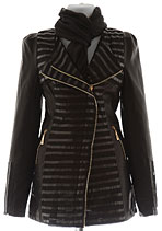 Приталенный плащ с асимметричной застежкой на молнию. Модель декорирована ажурными вставками, комбинированными с кожей. По бокам - два прорезных кармана на молнии. Изделие дополняет легкий шарфик.